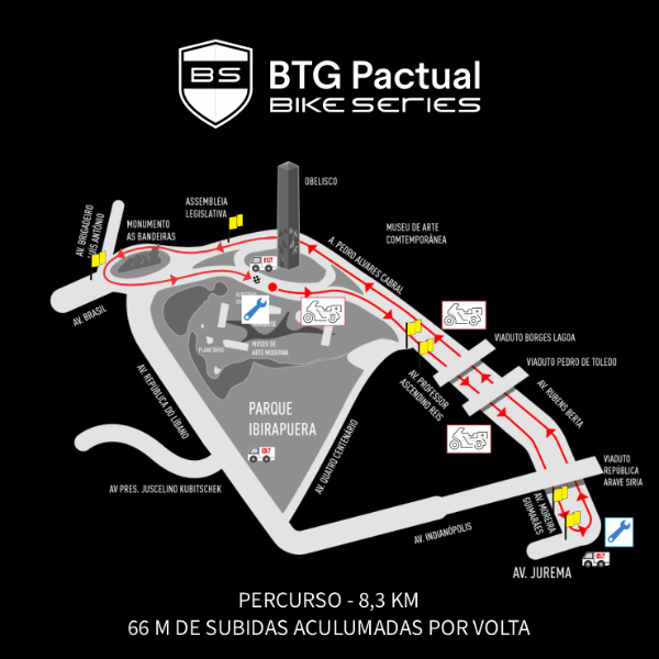 Dia 01 de novembro, domingo, o circuito Obelisco Ibirapuera receberá a 6ª edição do BTG Pactual Bike Series São Paulo.
