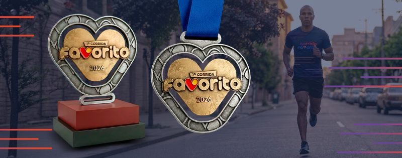 Desenhados em formato de coração, eles carregam a identidade do Favorito e representam a saúde e a vitalidade de cada atleta. Cruzar a linha de chegada é celebrar a vida, e queremos que você leve esse sentimento — e o nosso símbolo — no peito.