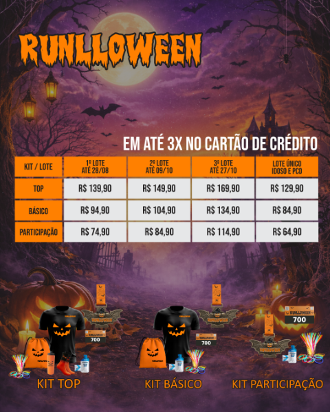 Venha com seu melhor traje de Halloween, com muita criatividade e espírito de aventura! Uma experiência única que vai te fazer correr (ou caminhar) em meio ao clima assustador e encantador dessa data tão especial.