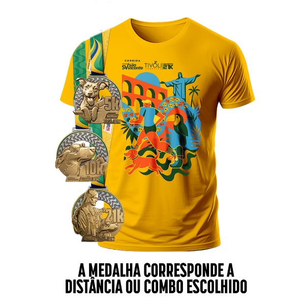 KIT PREMIUM: NUMERAL + CHIP, PÓS PROVA SÃO VICENTE COM FRUTA + ISOTÔNICO, ÁGUA GELADA (PERCURSO E CHEGADA), BRINDES PATROCINDADORES SUPERMERCADO SÃO VICENTE, INFRAESTRUTURA CHELSO, MEDALHA FINISHER, CAMISETA, BANDANA TUBULAR BRASIL.