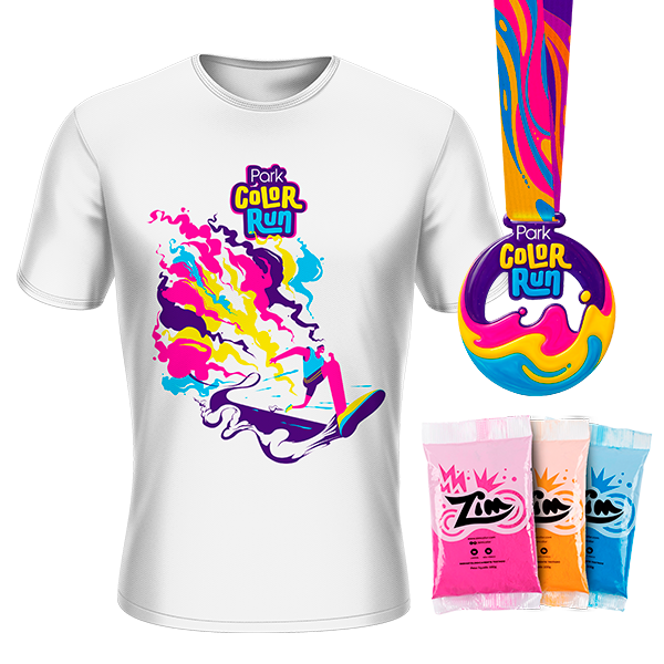 Composto por: Camiseta + Medalha + Sacos de pó colorido + Chip e número de peito